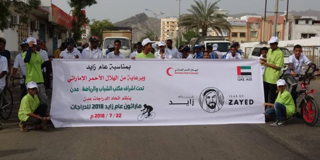 نظم اتحاد الدراجات بعدن صباح اليوم “سباق الدراجات الهوائية” برعاية من الهلال الأحمر الإماراتي ضمن أنشطة عام زايد 2018.