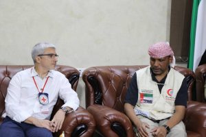 وناقش الجانبان خلال اللقاء سبل التعاون بين الهلال الأحمر والصليب الأحمر، وخاصة في المجالات الإغاثية والإيوائية في اليمن، إضافة إلى البحث في حلول مناسبة للنازحين وتوفير المساعدات الإنسانية لهم.