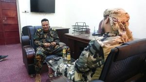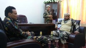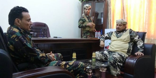 والتقاء العميد باعش بالشيخ عرفات سعيد عبدالله مدير دائرة التوجيه المعنوي لألوية الدعم والاسناد وتم مناقشة توحيد الجهود والتعاون المشترك في الجانب الاعلامي والتوعوي .