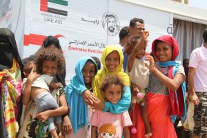 لم يقتصر دور الإمارات على العمليات العسكرية في اليمن، بل كانت بنفس الوقت ومنذ بداية عاصفة الحزم تقوم بدور إنساني كبير لإنقاذ الشعب اليمني والتخفيف من معاناته اذ ساهمت ومن خلال اذرعها الإنسانية المتمثلة في هيئة الهلال الأحمر الإماراتي ومؤسسة خليفة بن زايد آل نهيان للأعمال الإنسانية في إغاثة الشعب اليمني، وتطبيع الحياة في المحافظات المحررة منذ الساعات الأولى لتحريرها. حيث اتبعت الإمارات استراتيجية واضحة في العمل الإغاثي والإنساني تمثلت في تكثيف نشاطها وجهودها منذ اللحظات الأولى لتحرير المحافظات ودحر عناصر الميليشيا الحوثية منها. هذه الاستراتيجية التي بدأتها دولة الإمارات في عدن امتدت اليوم لتصل إلى الحديدة،