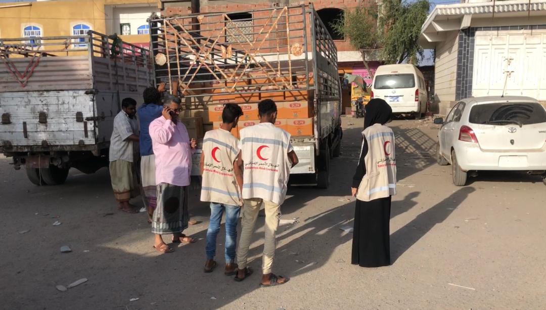 الهلال الأحمر الإماراتي الأسرع استجابة ووصولا بقافلة المساعدات لإغاثة أزارق الضالع