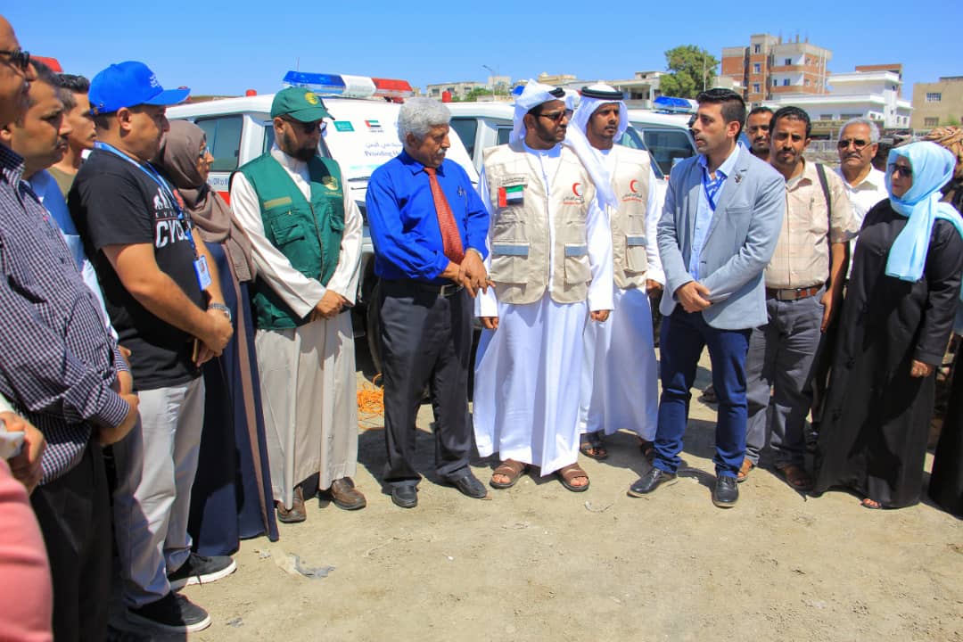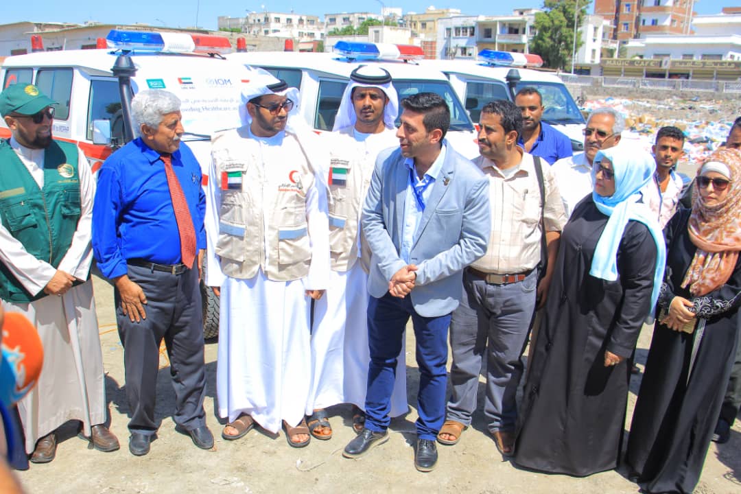 رفد الهلال الأحمر الإماراتي ومركز الملك سلمان قطاع الصحة بسبع سيارات إسعاف عبر منظمة الهجرة الدولية التي قام مديرها بعدن ربيع سري الدين بتسليمها لوزير الصحة الدكتور ناصر باعوم صباح اليوم في مستشفى الجمهورية بخور مكسر-عدن بحضور نائب ممثل الهلال الأحمر الإماراتي طيب الشامسي ووكيل وزارة الصحة الدكتور علي الوليدي ومدير مركز الإمداد الدوائي د/سعاد ميسري وعدد من المسؤولين في قطاع الصحة .