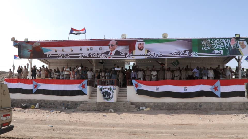 وخلال الحفل القى العميد مختار النوبي قائد اللواء الخامس دعم وإسناد كلمة قال فيها :” نهنئ شعبنا الجنوبي البطل بمناسبة الذكرى الخامسة والخمسون لقيام ثورة الرابع عشر من أكتوبر المجيدة ،والتي انطلقت من جبال ردفان وضحى من أجلها كوكبة من الشهداء الأبطال من أجل العزة والكرامة ونيل الحرية والاستقلال لكل اراضي الجنوب من المستعمر البريطاني البغيض” .