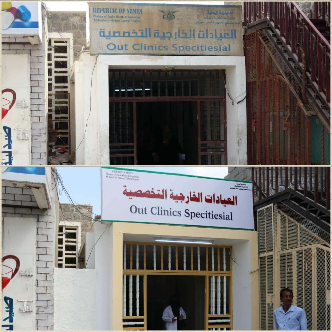 افتتح وكيل وزارة الصحة العامة والسكان الدكتور أحمد الكمال ومعه مدير العمليات الإنسانية لدولة الإمارات في اليمن الأستاذ سعيد الكعبي صباح اليوم العيادات الخارجية بمستشفى الجمهورية التعليمي بعدن بعد صيانتها وتأثيثها من قبل هيئة الهلال الأحمر الإماراتي ضمن مشاريع عام زايد.