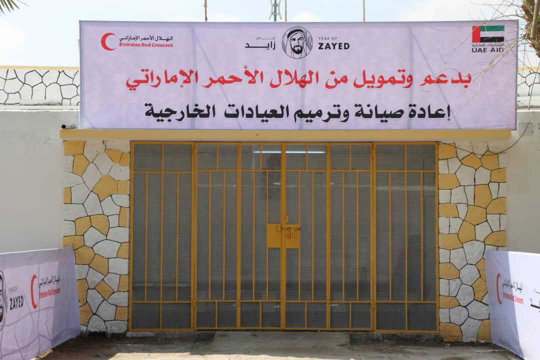 وعمل الهلال الأحمر الإماراتي على إعادة تأهيل وتأثيث قسم العيادات الخارجية بمستشفى الجمهورية بعدن وتزويدها بالأجهزة الطبية الحديثة والأدوات المكتبية وعادت للعمل اليوم بعد ان خرجت عن الخدمة عام 2015 بسبب الحرب وما لحقها من أضرار.