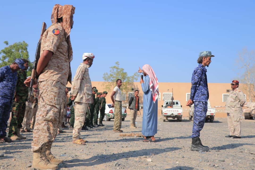 وخلال الزيارة التقى فريق التوجيه المعنوي بقيادة وأفراد الحزام الأمني بمعسكر “٧”اكتوبر وأفراد النقاط الأمنية المنتشرة داخل المحافظة حيث ألقيت الكلمات والنصائح التوعية من قبل فريق التوجيه الهادفة إلى رفع القدرات الذهنية وتنمية الأفكار والمفاهيم لدى الجنود وحثهم على ضرورة الالتزام باللوائح والنظم العسكرية والأمنية والانضباط بالاداء الوظيفي وان الأمن وجد لتأمين المواطنين في أموالهم وأعراضهم ،بالإضافة إلى التعامل الحسن بعيدا عن الغطرسة والظلم والذي بسببه سقطة أنظمة واهلك الطغاة ،وإلى العمل بهمة عالية وخلق عظيم .