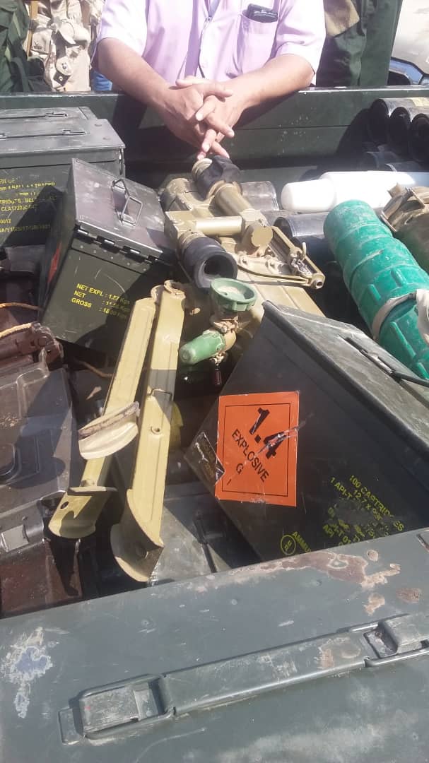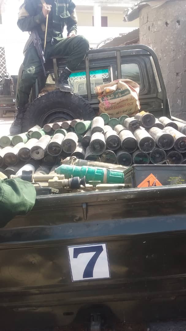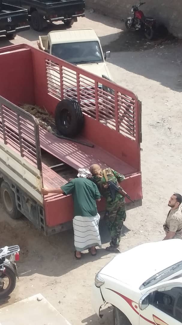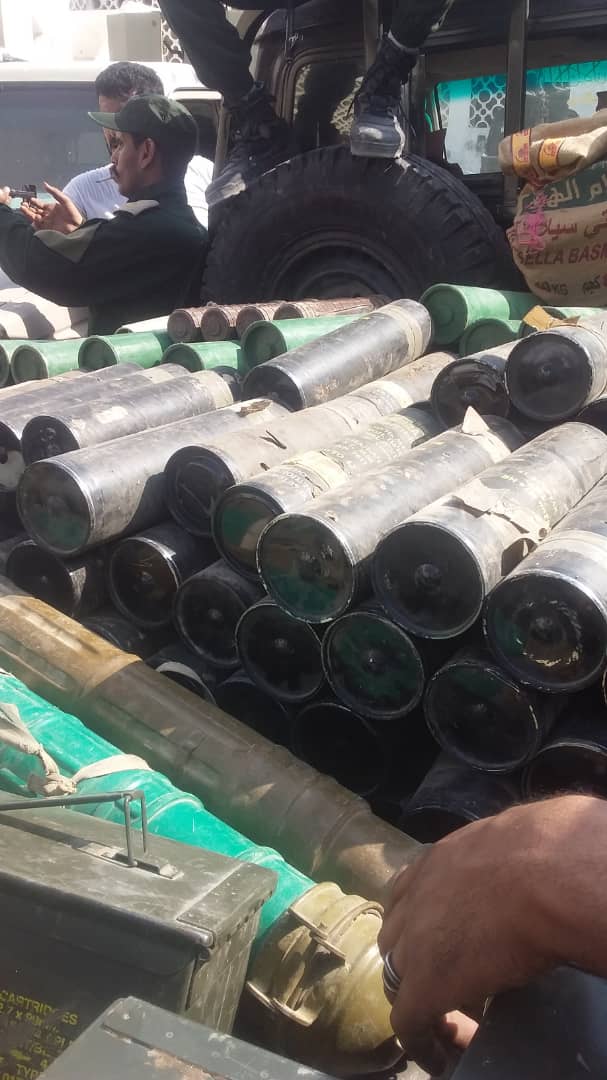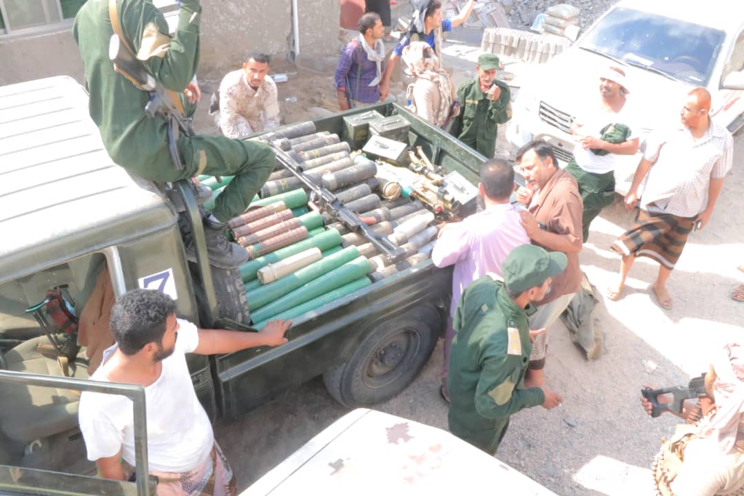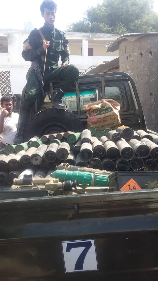 وفي تصريح لقائد نقطة المنصة بمشهور عبدالله عمر علوي قال فيه :عند قيام أفراد نقطة المنصة بخط مشهور بقيادة ضابط النوبة الأولى أحمد الجريبي بتفتيش سيارة نوع (دينا)تحتوي على سطحة حديد ملحمة وجدوا تحتها على كميات كبيرة من الأسلحة والذخائر منها”ذخائر هاون عيار ٦٠،٨٢وذخائر آر بي حي مع الحشوات وقاعدة إطلاق صواريخ حرارية، ومعدل بيكا ومعدل ٢٣بدون ماصورة “قلب”وثلاثة معدلات بي عشرة بالإضافة إلى ١٦شنطة دوشكا عيار ٥٠.