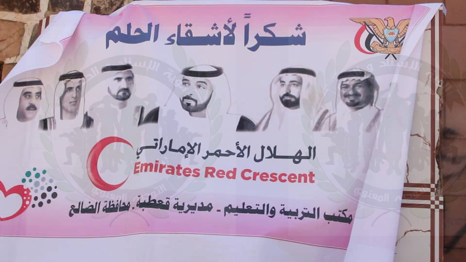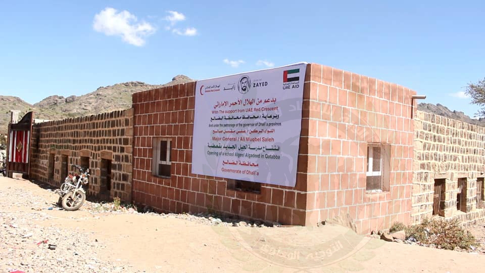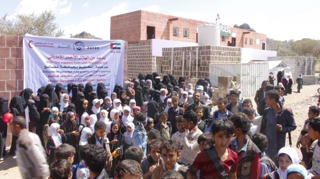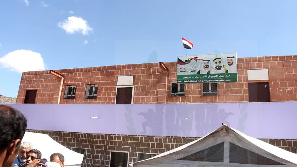 حيث دشن وكيل محافظة الضالع نبيل العفيف برفقة فريق الهلال الأحمر الإماراتي افتتاح مدرسة الجيل الجديد بمنطقة مريس والتي تم ترميمها من قبل الهلال الإماراتي .