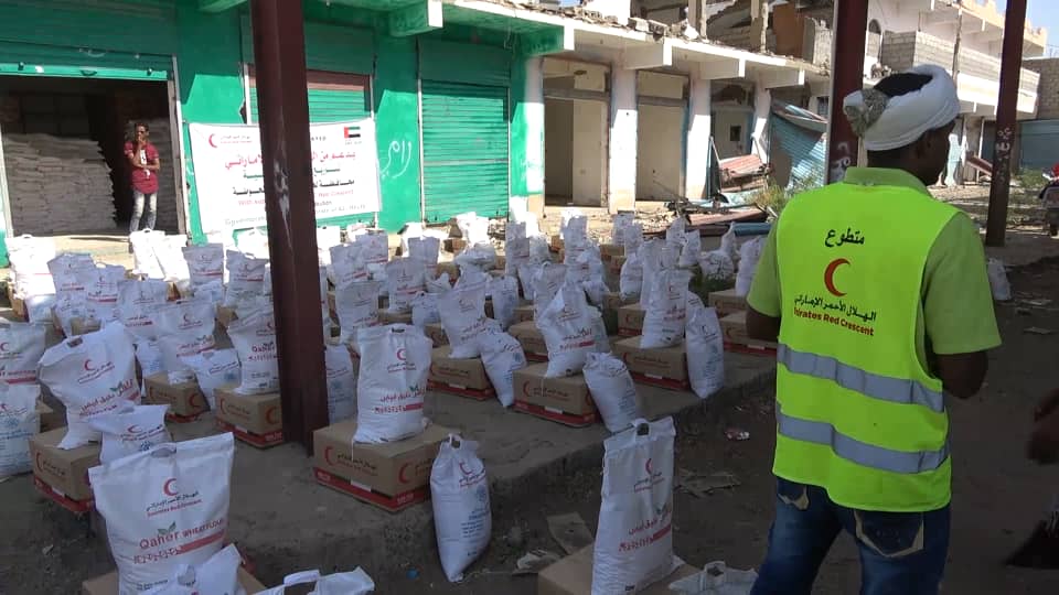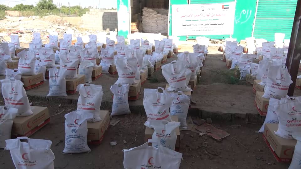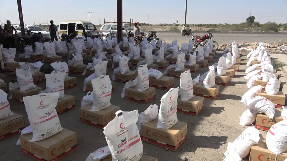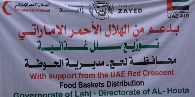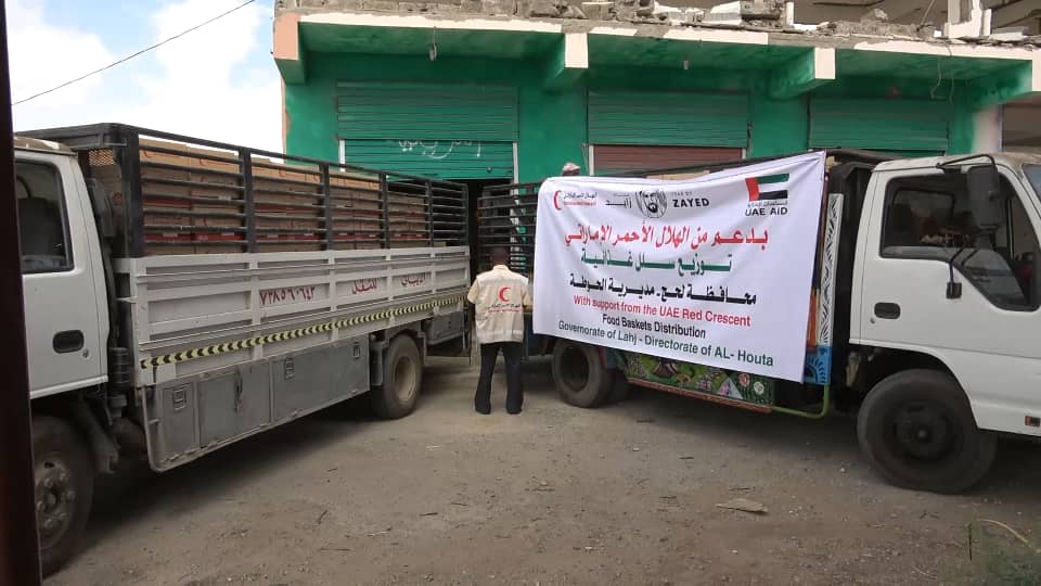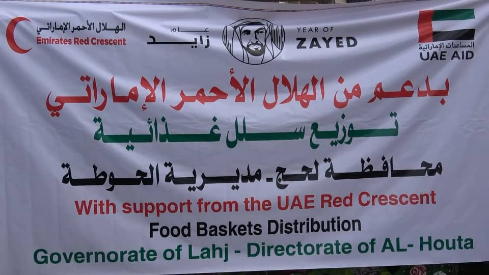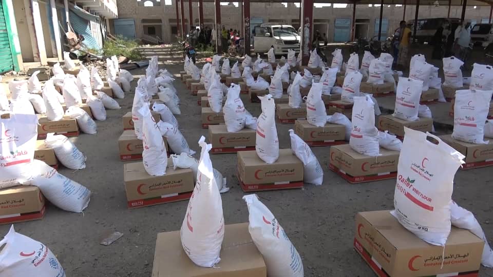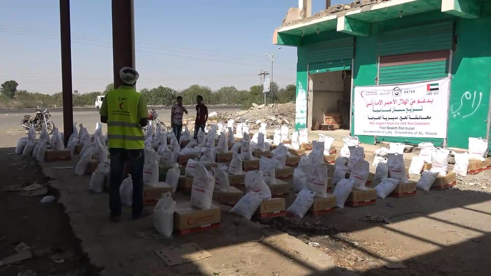 الهلال الأحمر الإماراتي يوزع 1000 سلة غذائية لأبناء مديرية الحوطة بلحج