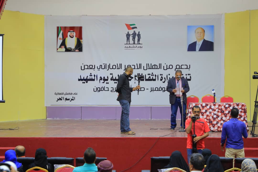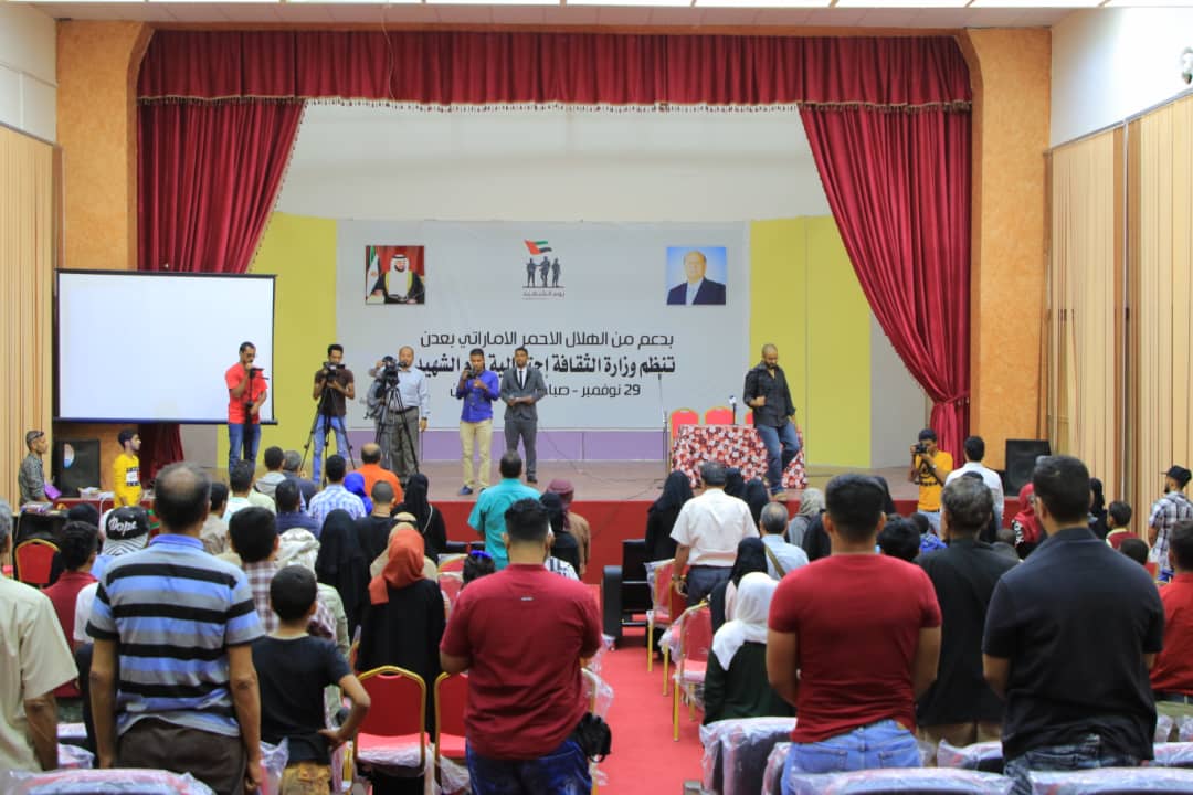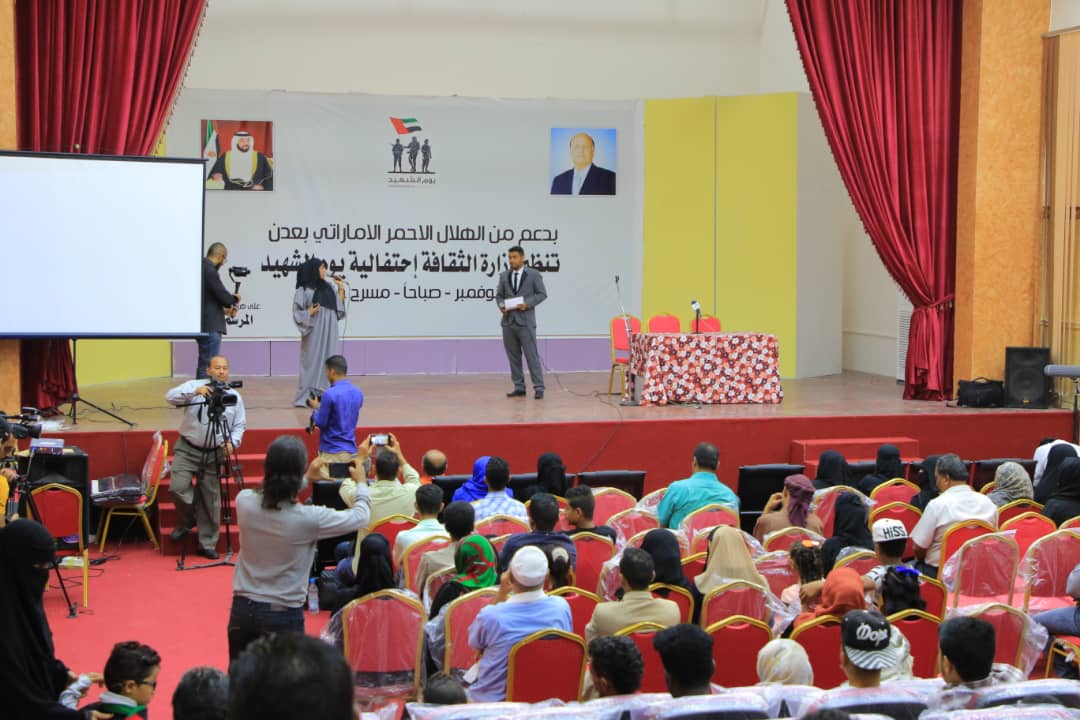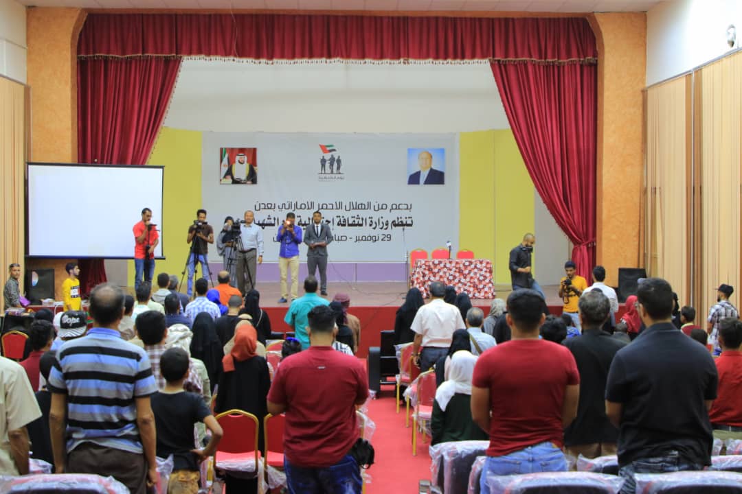 أحيت وزارة الثقافة اليمنية بدعم الهلال الأحمر الإماراتي اليوم فعالية بمناسبة “يوم الشهيد” الذي يصادف ال30 نوفمبر من كل عام وهو يوم وطني تعبر فيه دولة الإمارات العربية المتحدة عن تقديرها لتضحيات شهدائها في كل سنة، ووقوفها ودعمها لأسر وذوي الشهداء، وتؤكد فيه على أنها لن تنسى تضحيات أبنائها. وأقيمت الفعالية في المسرح الوطني بمديرية المعلا بالعاصمة المؤقتة عدن