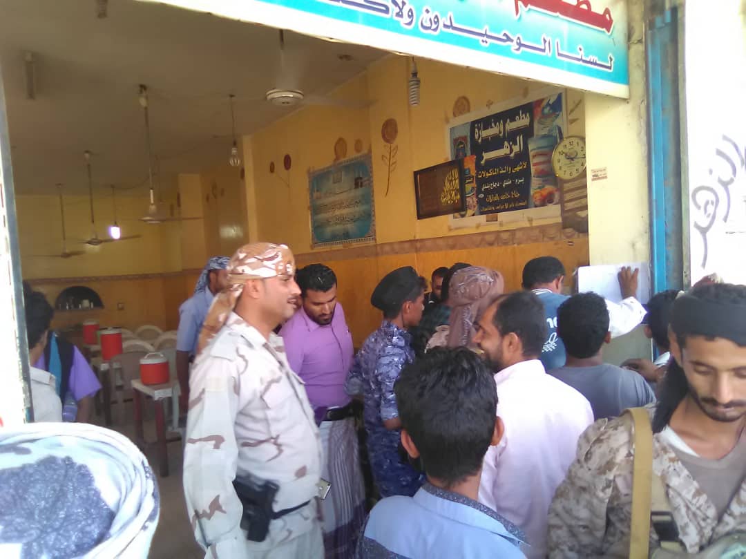 وخلال عمليه النزول قام مدير مكتب التجاره والصناعه الاخ فضل عبدوه بالزام مالكي المحال التجاريه برفع تسعيره للمواد الغذائيه والصاقها ببوابات محالهم التجاريه وكذلك نفس الشي في البوفيات والمطاعم وغيرها