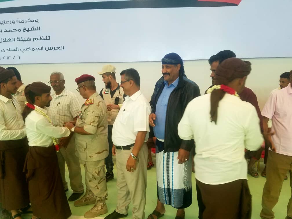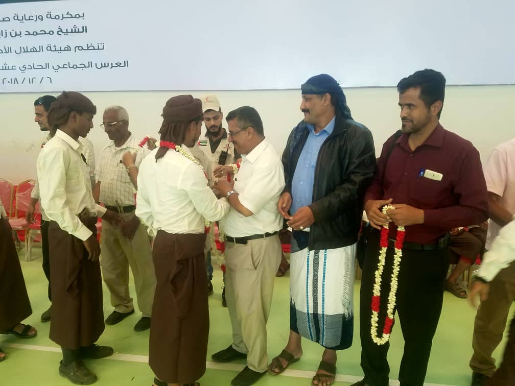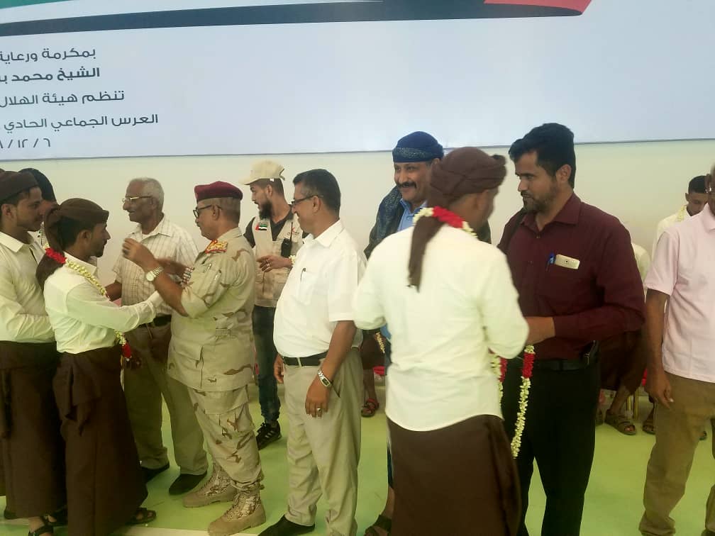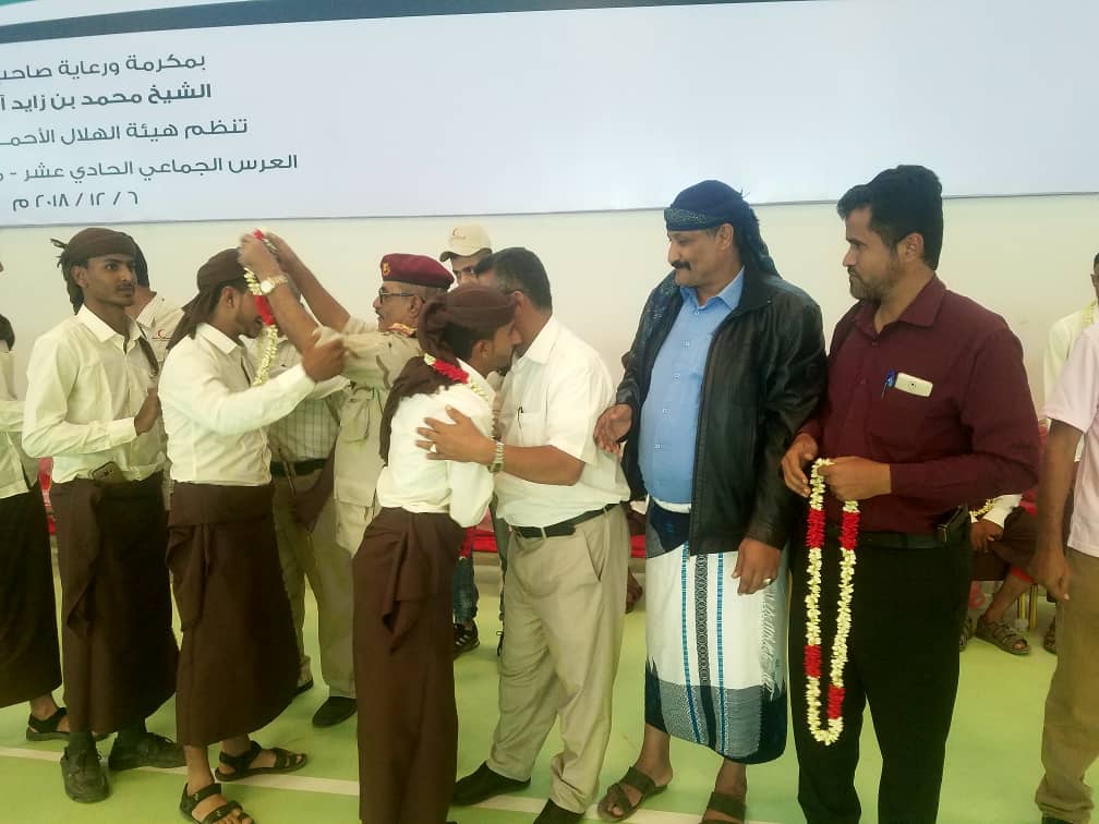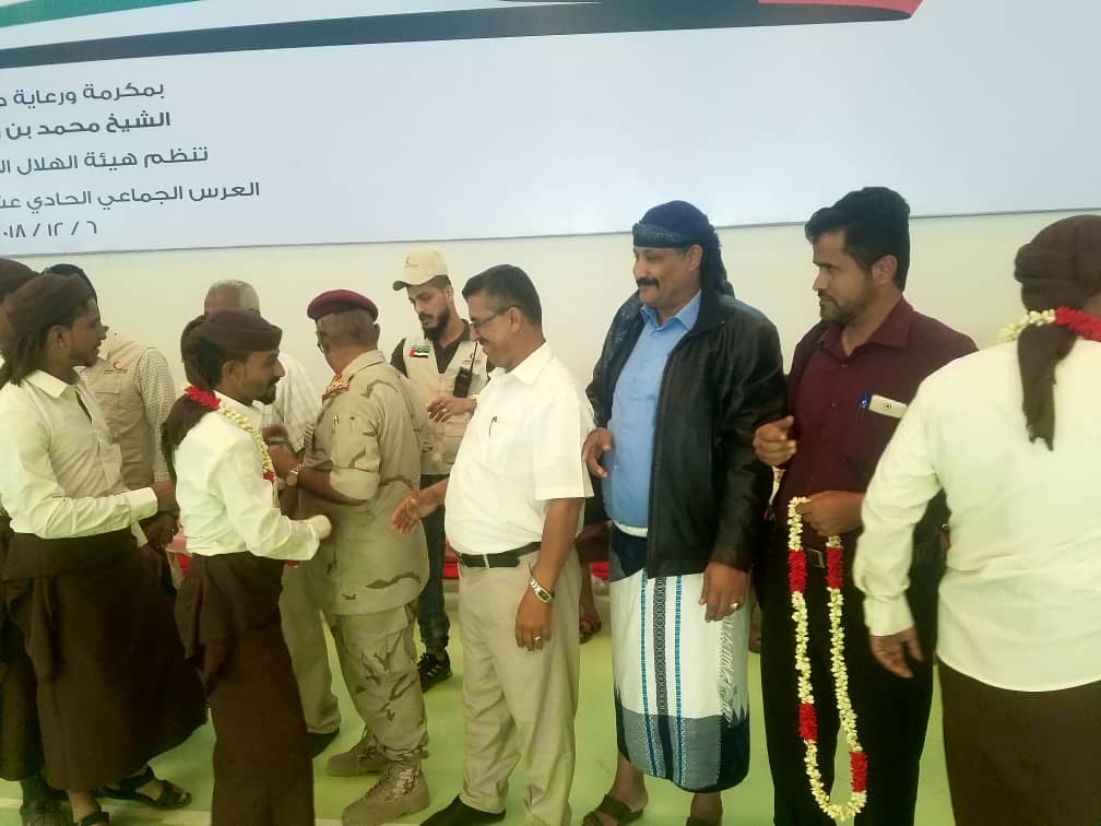 بمكرمة ورعاية صاحب السمو الشيخ محمد بن زائد آل نهيان تنظم هئية الهلال الأحمر الإماراتي العرس الجماعي الحادي عشر في محافظة الضالع .