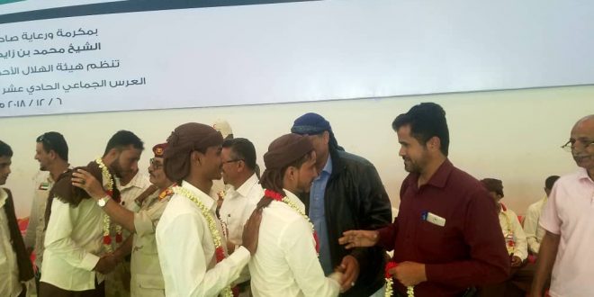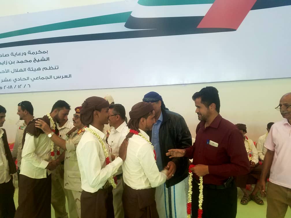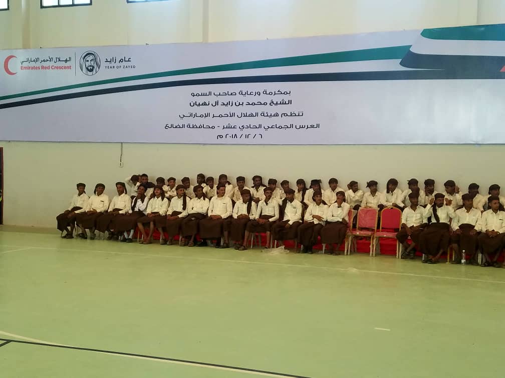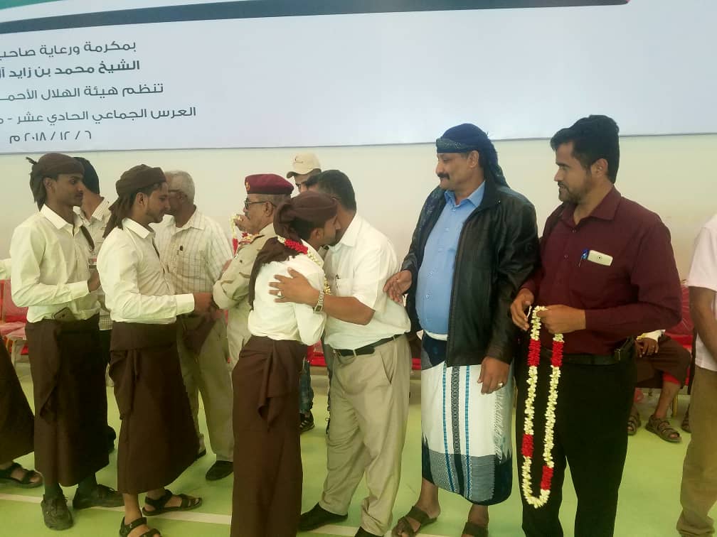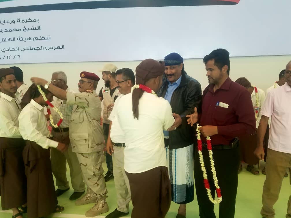 بمكرمة ورعاية صاحب السمو الشيخ محمد بن زائد آل نهيان تنظم هئية الهلال الأحمر الإماراتي العرس الجماعي الحادي عشر في محافظة الضالع .