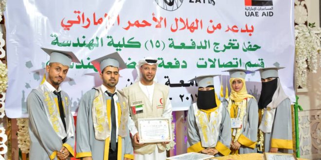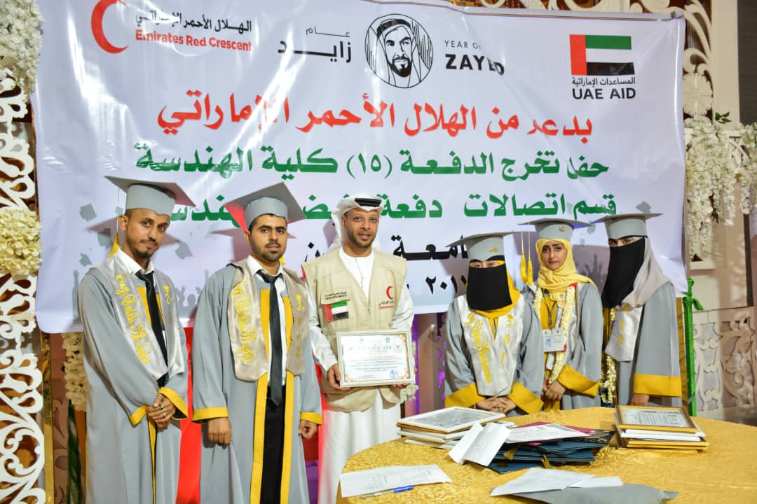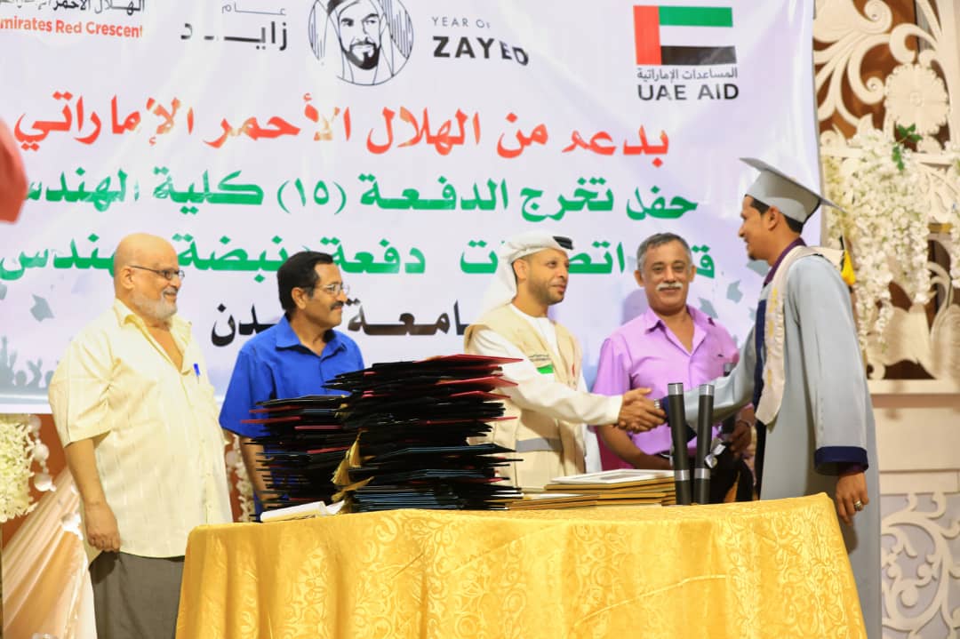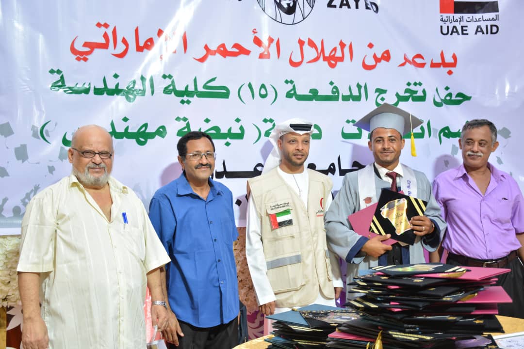 يذكر أن الهلال الأحمر الإماراتي خلال عام زايد 2018 رعى أكثر من 13 فعالية تخرج للطلاب من جامعة عدن شملت مختلف الأقسام والكليات في عدن وتعز والضالع .