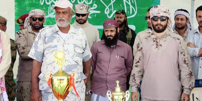 وفي ختام المنافسات سلمت الكؤوس والميداليات الذهبية للفائزين من قبل ممثل التحالف العربي “مكتب الدعم والاسناد” والعقيد حيدرة المحرمي وسط تشجيع منقطع النظير أفراد السرايا.