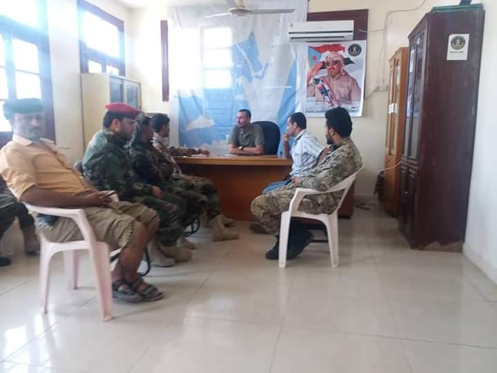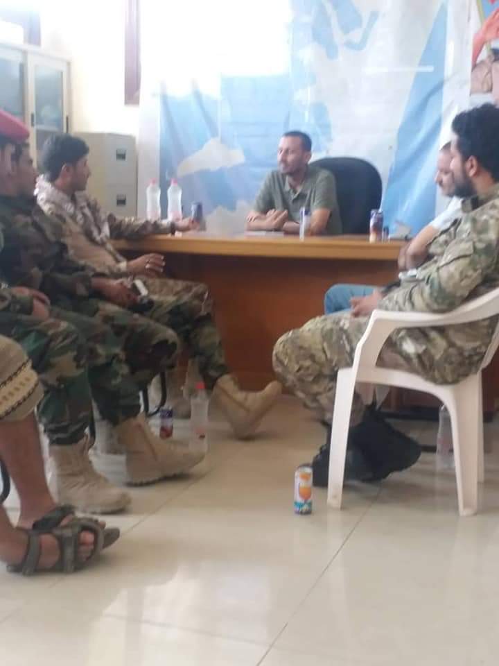 التقى اليوم قائد كتائب العاصفة المقدم أوسان العنشلي في مقر قيادة كتائب العاصفة في العاصمة عدن بقائد النخبة الشبوانية المقدم محمد سالم البوحر وقائد محور الشهداء عتق النقيب وجدي باعوم و عبر قائد كتائب العاصفة عن سعادته بزيارة قائد الخبة الشبوانية وقائد محور الشهداء لكتائب العاصفة .