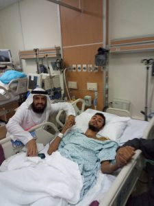 زار القائدان البارزان في المقاومة الجنوبية والوية الدعم والاسناد الشيخ هاني بن بريك نائب رئيس المجلس الانتقالي والمشرف العام لألوية الاسناد والدعم والشيخ هاشم السيد القائد العام لألوية الدعم والاسناد الجريح على صالح النوبي احد جرحى حادثة تفجير منصة العروض بالعند الواقعة في محافظة لحج والذي يرقد في المستشفى العسكري بدولة الإمارات العربية المتحدة.