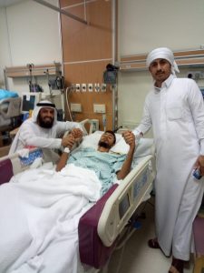 القائدان هاني بن بريك و هاشم السيد يزوران أحد جرحى حادثة تفجير منصة العند