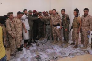 سلمت اليوم نقطة دوفس المركزية كميات الحشيش -طن واحد- التي ضبطتها أمس الاثنين الى قيادة ألوية الدعم والإسناد بمعسكر الشعب بعدن, بحضور قائد عمليات الدعم والإسناد محمود سالم ومدير أمن عدن اللواء شلال علي شايع وقائد الحزام الأمني والتدخل السريع بأبين “عبداللطيف السيد” وقائد اللواء الأول دعم وإسناد العميد منير اليافعي أبو اليمامة وعدد من قادة الكتائب والمسؤولين الأمنيين .