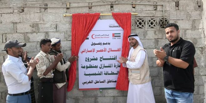 دشنت هيئة الهلال الاحمر الإماراتي مشروع منظومة طاقة شمسية متكاملة في قريتي غليفقة والطائف التابعتين لمحافظة الحديدة.