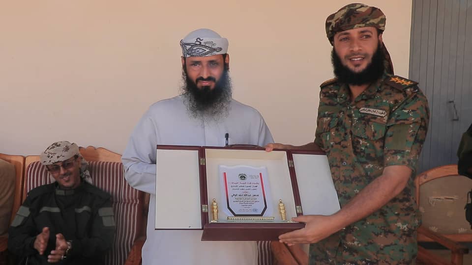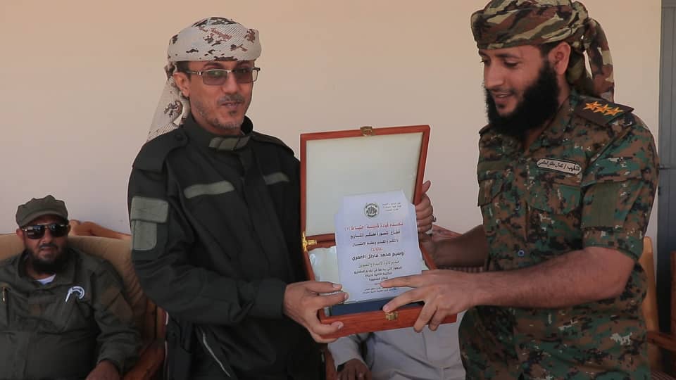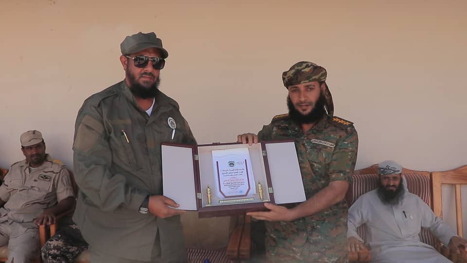 وفي نهاية الحفل كرمت كتيبة الاحتياط الثانية الشيخ محسن الوالي مدير الدائرة المالية ،والقائد مختار الحكمي مدير دائرة الأشغال العسكرية ،والقائد وسيم العمري مدير دائرة الإمداد والتموين بدروع الوفاء وذلك تقديرا لجهودهم المبذولة في دعم الكتيبة وقطاع المنصورة.