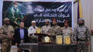 وثمن أبو اليمامة الدعم الذي قدمته دول التحالف العربي بقيادة المملكة العربية السعودية ودولة الإمارات العربية المتحدة للمحافظات الجنوبية المحررة وإرساء دعائم الأمن والاستقرار فيها