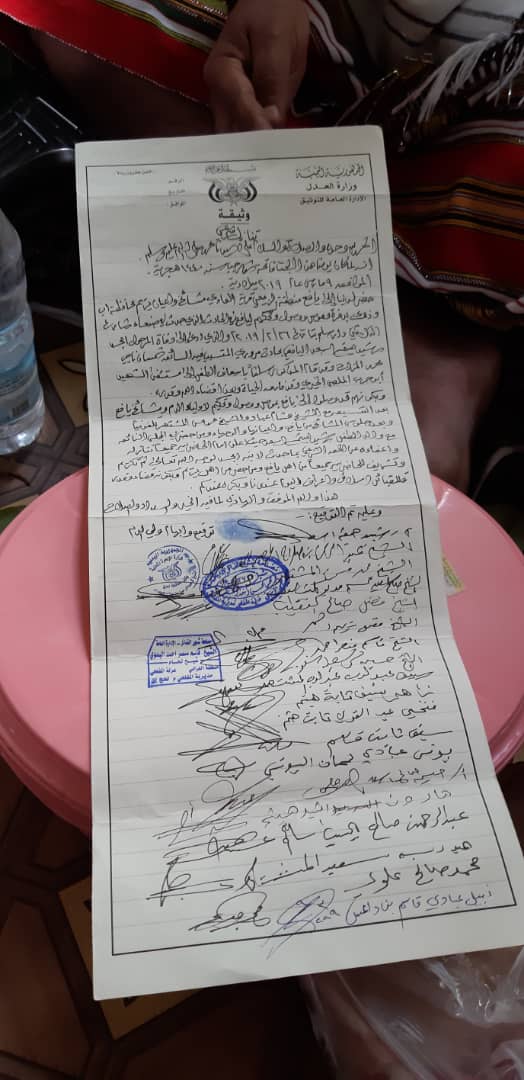 عملا بقول الله تعالى(ومن عفى واصلح فاجره على الله) وتطبيقاً لسنة نبينا الكريم التي تحثنا على العفو عند المقدرة وانطلاقاً من العادات القبلية الأصيلة والقيم الرفيعة التي تربئ عليها أبناء قبائل يافع ونزولاعند قرار أسرة الفقيد أمجد وقبيلة بن اسعد جابر ممثلة بوالده رشيد هيثم بن اسعد جابر نعلن عفونا وصفحنا عن المتسبب بالحادثة شمسان ناجي محمد المزاح والتي توفي على إثرها ابننا أمجد سائلين الله أن يرحمه وان يجعله شفيعا لوالديه مرجعاً إليهم أسلحتهم داعيا اياهم الضيافة في ديار قبائل الربيعي.