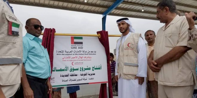 افتتحت دولة الإمارات ممثلة بذراعها الإنسانية ” الهلال الأحمر ” اليوم مشروع سوق الأسماك في مديرية الخوخة التابعة لمحافظة الحديدة بعد تزويده بالتجهيزات والآلات .