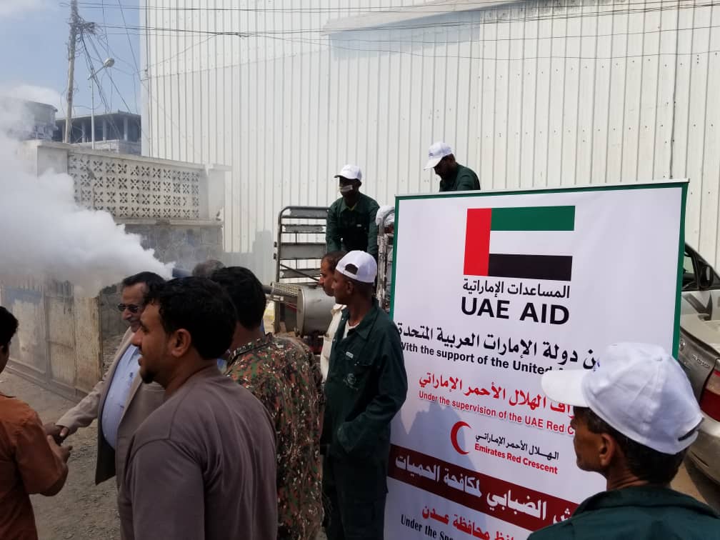 انطلقت امس في محافظة عدن بتمويل من دولة الإمارات العربية المتحدة وتحت إشراف هيئة الهلال الأحمر الإماراتي ” حملة الرش الضبابي لمكافحة حمى الضنك “.