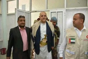 وخلال الزيارة التي قام بها المحافظ في أقسام المستشفى أدلى بتصريح شكر فيه الجهود الإنسانية الطيبة التي تقدمها دولة الإمارات الشقيقة عبر ذراعها الإنساني الهلال الأحمر للتخفيف من معاناة المواطنين في كل مناطق محافظة تعز.