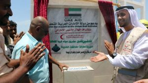 دشنت دولة الإمارات أمس مشروع المياه الإستراتيجي في منطقة القطابا بمديرية الخوخة التابعة لمحافظة الحديدة في إطار استجاباتها السريعة لتلبية احتياجات أهالي الساحل الغربي لليمن.