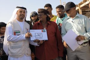 وخلال التوزيع أشاد مدير مراكز الإنزال السمكي منسق الهيئة الدولية للاصطياد بخليج عدن الأستاذ نائل السروري، بدور الإمارات في دعم الصيادين من أسر الشهداء وذوي الاحتياجات الخاصة وتحسين إنتاجهم من الاصطياد بعدما تضررت قواربهم ومصادر عيشهم في الحرب التي شهدتها مناطقهم الساحلية وكذلك الأعاصير التي ضربت المنطقة خلال الفترة الماضية.