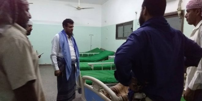 إلى ذلك زار حيدرة جبران مستشفى محنف العام بمدينة لودر واستمع من الدكتور نبيل الكازمي إلى شرح مفصل عن الخدمات التي يقدمها مستشفى بحنف للمرضى وفي علاج واستقبال جرحى الحرب في ثرة بالرغم من شحة الإمكانيات.