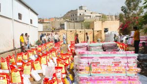 وتم تدشين توزيع المساعدات بحضور قيادات السلطة المحلية بمحافظة الضالع.