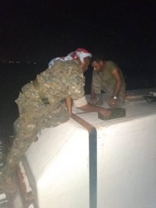 وباشراف مباشر من قائد الحزام الامني للعاصمة عدن القائد وضاح عمر تم نقل الشاحنة من مكان ضبطها الى معسكر الشعب وإحالة المتهمين إلى الشؤون القانونية للتحقيق معهم ومن تم تحويلهم للجهات المختصه
