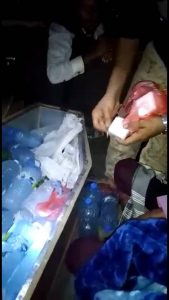 وقال مصدر مسؤول في نقطة دوفس في تصريح خاص بـ” القسم الأعلامي بألوية الدعم والإسناد ” ان افراد النقطة ضبطوا مركبة قادمة من محافظة مأرب تقل جثة متوفي داخل تابوت ووضع حاملي التابوت علب ماء مثلجة على جثة المتوفي،