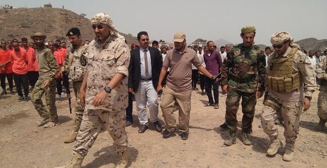 الرئيس الزبيدي وقائد قوات التحالف العربي يتفقدان اعمال التدريب والتجهيز القتالي بمعسكر لبوزة بلحج