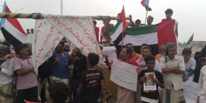 نظم المئات من أبناء الجنوب وقفة احتجاجية امام مقر التحالف العربي بالبريقة تضامنا مع دولة الإمارات العربية الشقيقة ضد اصوات النشاز التي تقلل من دورها في المناطق المحررة.