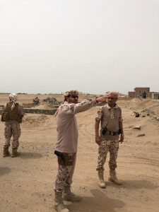قائد التحالف العربي يزور كتيبة حزم “١” في بئر احمد ونقطة المنصة غرب عدن