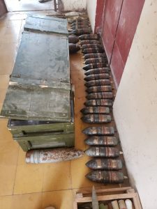وتم ذلك إثر مداهمة نفذتها وحدات من اللواء بعد تحري المعلومات بتخزين هذه الذخائر والقذائف في أماكن متفرقة.