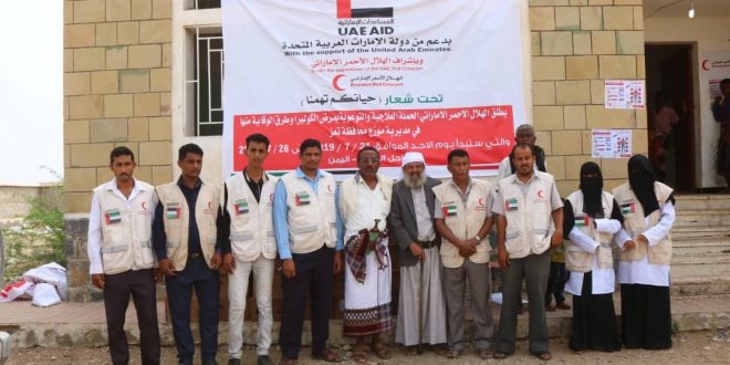 دشنت دولة الامارات، عبر ذراعها الإنسانية “هيئة الهلال الأحمر” اليوم حملة علاج ومكافحة وباء الكوليرا والوقاية منه، في مديرية موزع بالساحل الغربي اليمني.