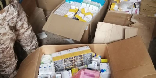 وقال بافخسوس : ان الألواح الشمسية والأدوية وضعت تحت مواد غذائية ومنزلية داخل الشاحنتين، ولا تحمل اي فواتير رسمية، وقد توضح ان من بين الأدوية المهربة حقن ترمادول المخدرة.