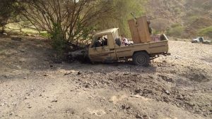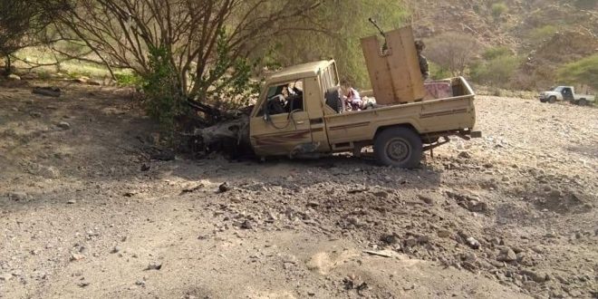 واستهدفت عناصر الإرهاب أحد اطقم الحملة الأمنية بعبوة ناسفة, ونجم عنها استشهاد الجندي ” خالد هادي ” وجرح الجندي احمد عدبالله حسين في مديرية المحفد وادي الخيالة حيث تتمركز خلايا التنظيم.