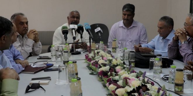 خلال مؤتمر صحفي بحضور وفد من الانتقالي..