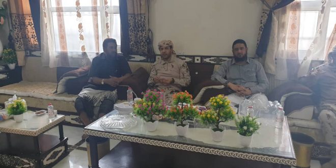 زار قائد قوات التحالف العربي في العاصمة عدن العميد راشد الغفلي(ابومحمد) يرافقة عدد من ضباط قوات التحالف العربي، منزل العميد ناصر الشوحطي لتقديم واجب العزاء له وأخوانه في وفاة المغفور له بإذن الله تعالى والدهم الشيخ/ محمد محسن الشوحطي.