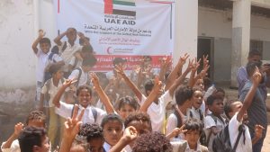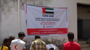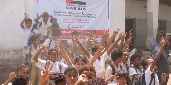 تجدر الإشارة إلى أن الهلال الأحمر الإماراتي ينفذ حملة العودة للمدرسة بمختلف المحافظات المحررة وتشمل توزيع الحقيبة المدرسية للطلاب من أبناء الشهداء.