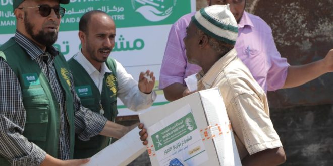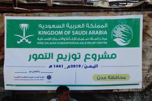 مركز الملك سلمان يدشن توزيع تمور لـ 6000 اسرة من النازحين والفقراء بعدن