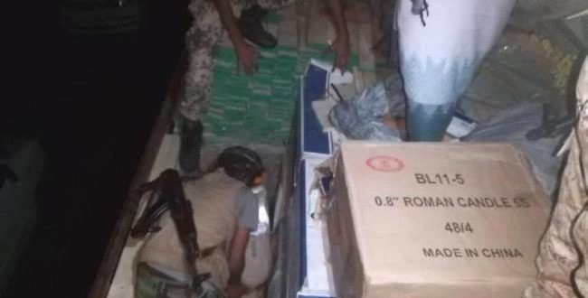 وتتكون شحنة المضبوطات من العاب نارية ومهربات ممنوعة أخرى كان يخطط ادخالها إلى عدن في سياق عملية اغراق العاصمة عدن في فوضى المهربات والممنوعات.