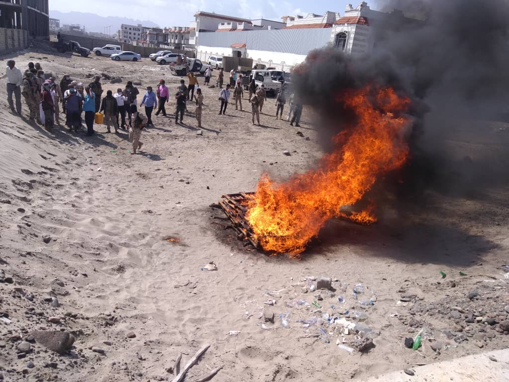 وجرت عملية الاتلاف للمخدرات التي تم ضبطها خلال الأشهر الماضية قبل دخولها عدن في نقطة المجاري التابعة للحزام الأمني شرق عدن وكذلك ضبط 25شريط بحوزة عصابات الترويج بعد توجيهات النائب العام واشراف رئيس النيابة الجزائية المتخصصة وإدارة مكافحة المخدرات بقوات الدعم والإسناد وقائد قوات الدعم والإسناد محسن الوالي.