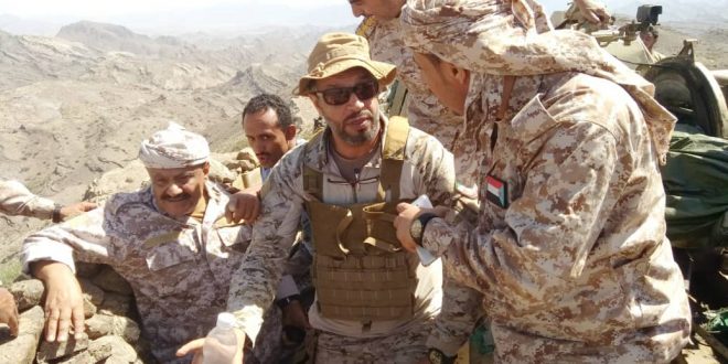اللواء العُمري وركن عمليات التحالف في عدن يزوران الخطوط الإمامية لجبهات محور كرش- الشريجة